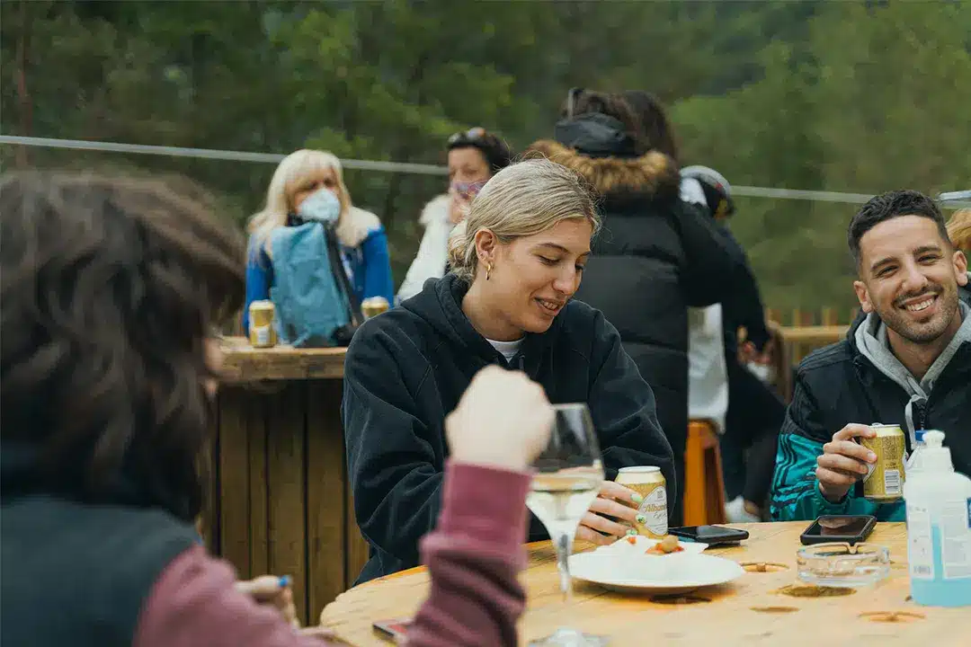 Tenemos un Área de descanso, terrazas y un pequeño bar donde podrás esperar mientras ves a tus amigos y familiares bajar por la tirolina. También hay pantallas con la proyección de la salida de la tirolina en tiempo real.